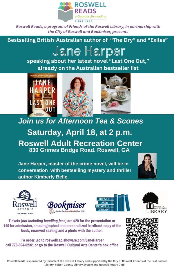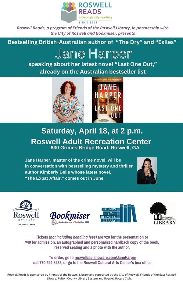 Roswell Readers are in for a real treat. Roswell Reads invites you to an event featuring Jane Harper, Australia’s Queen of Crime, the author of five novels, all set in rural Australia.